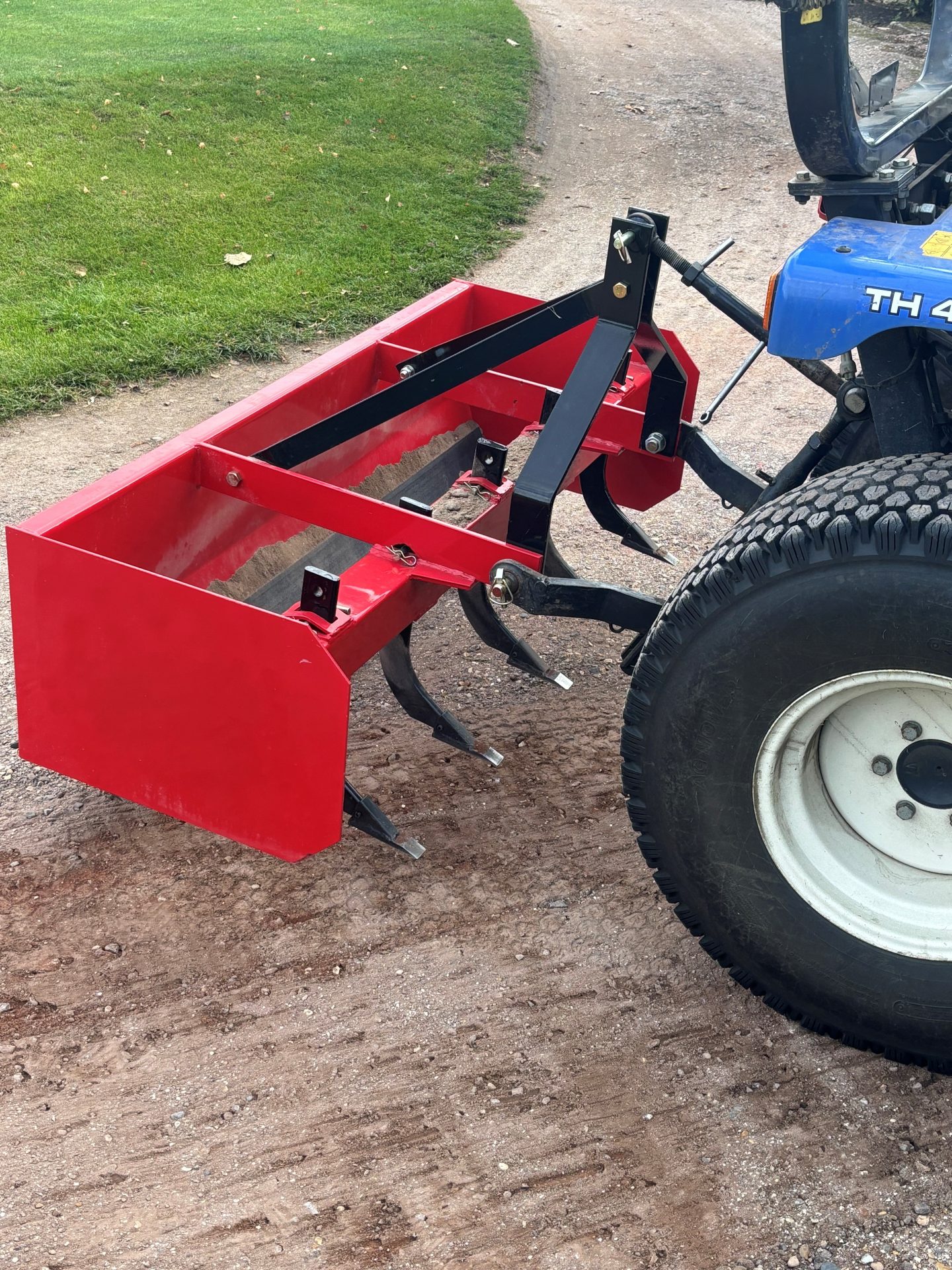 A new path renovator has been acquired. A successful trial on the 12th hole showed excellent results. Pulled by the compact tractor, it allows adjustable fork depth and includes a grader—ideal for repairing the holes that regularly appear on buggy paths.